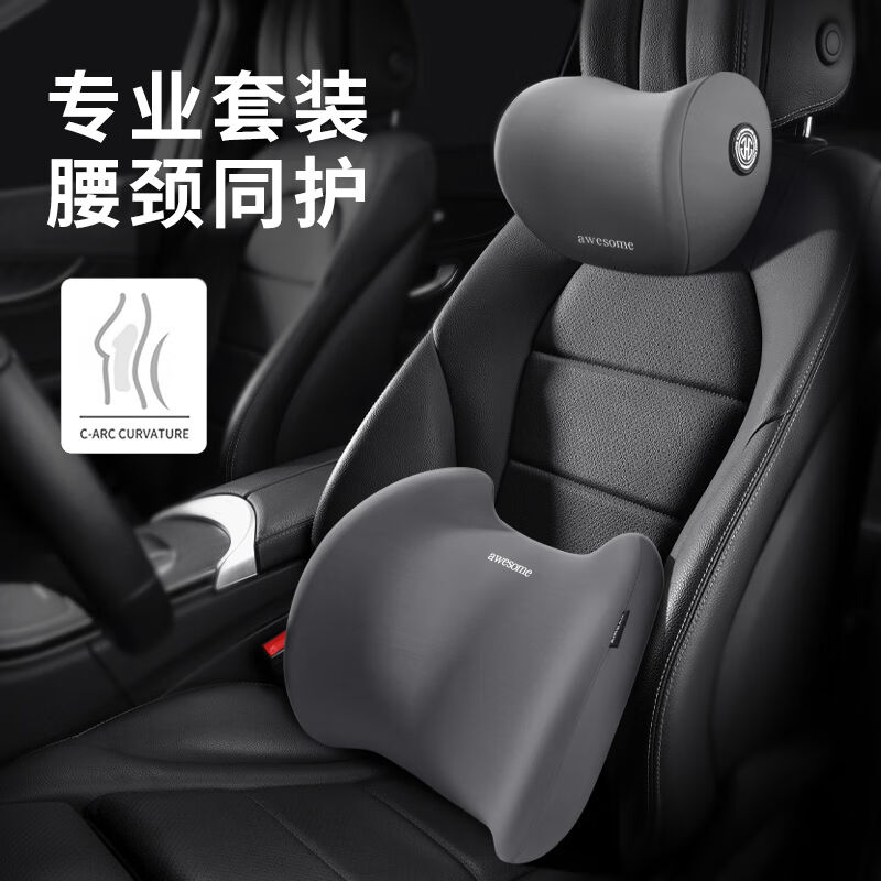 GiGi汽車頭枕腰靠套裝車用靠墊腰托竹炭記憶棉內芯 美觀耐用