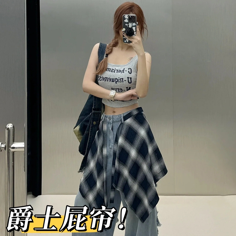 爵士舞屁簾疊穿高級穿搭神器韓國不規則一片式系帶格子街舞腰帶