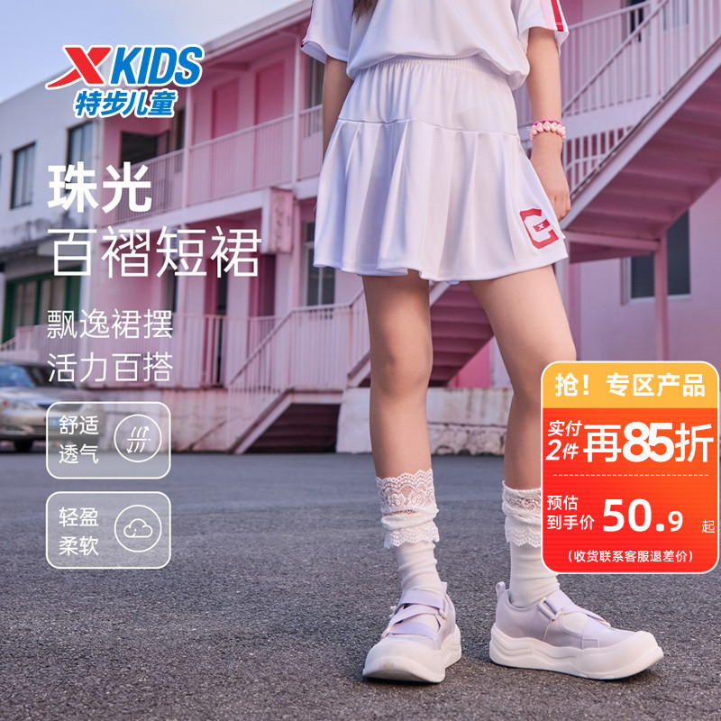 特步童裝女童輕盈柔軟百褶短裙子夏季新款中大童舒適透氣兒童裙子