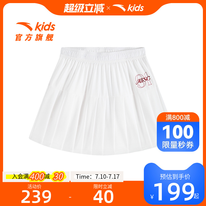 安踏兒童女大童短裙2025新款上新舒適親膚中大童百褶籃球運動短裙