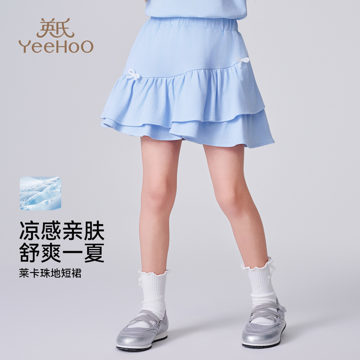[涼感抑菌]英氏女童短裙2025夏季新款兒童時尚洋氣女孩半裙潮薄款