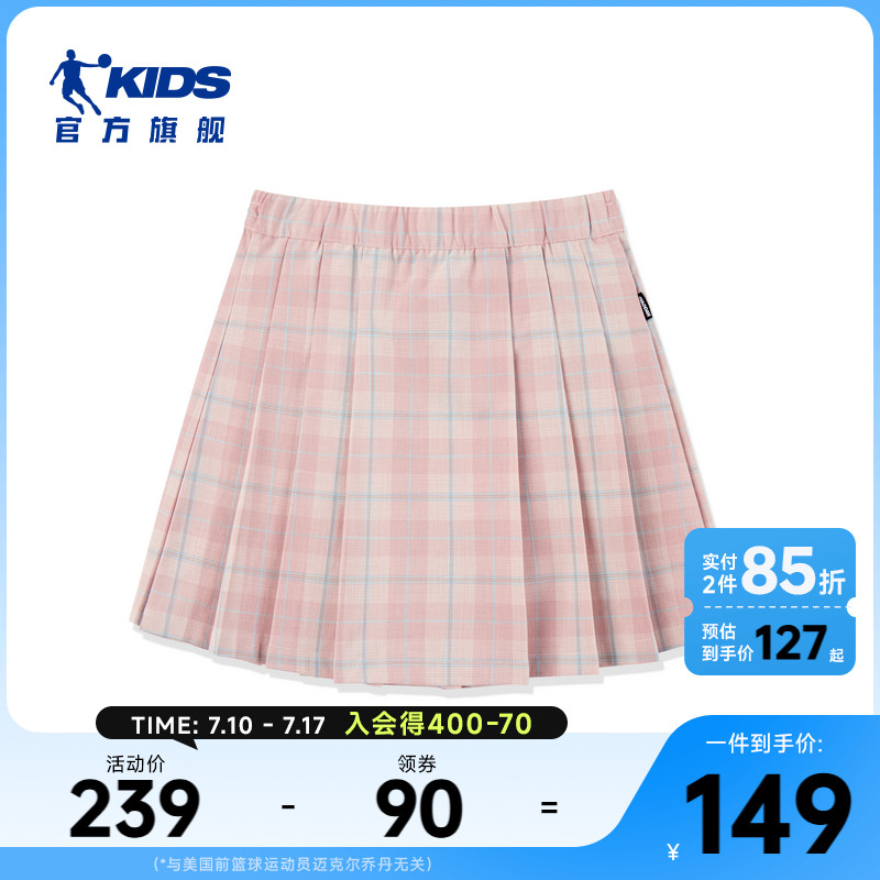 商場同款喬丹童裝女童百褶裙2025夏季新款大童格子半身裙T9525313