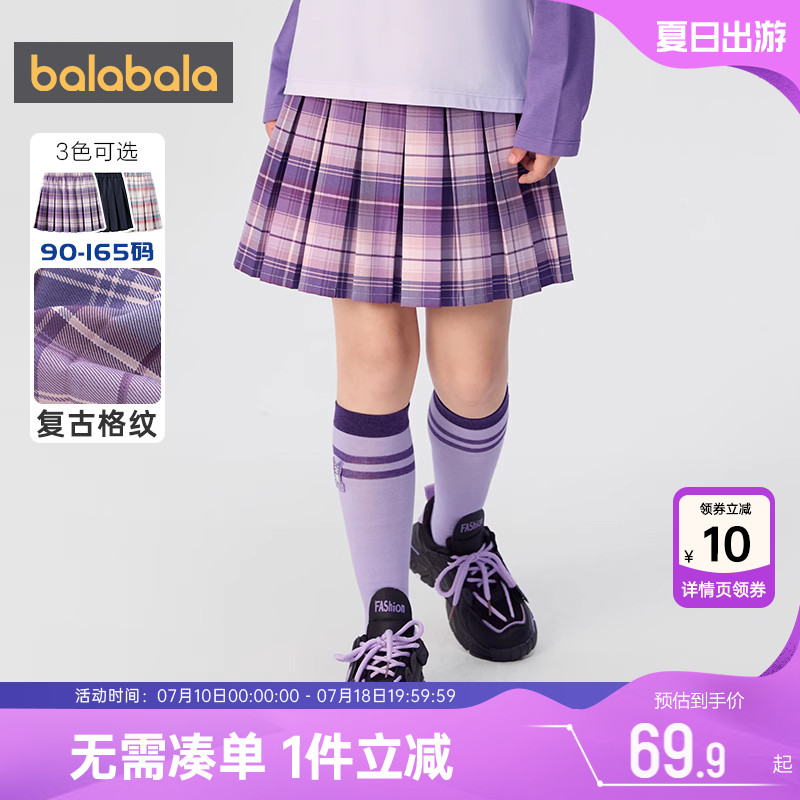 巴拉巴拉女童短裙中大童JK百褶裙春秋款童裝寶寶格子裙子兒童半身