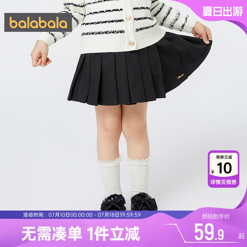 巴拉巴拉女童半身裙寶寶黑色裙子春秋季新款童裝兒童百褶裙JK短裙