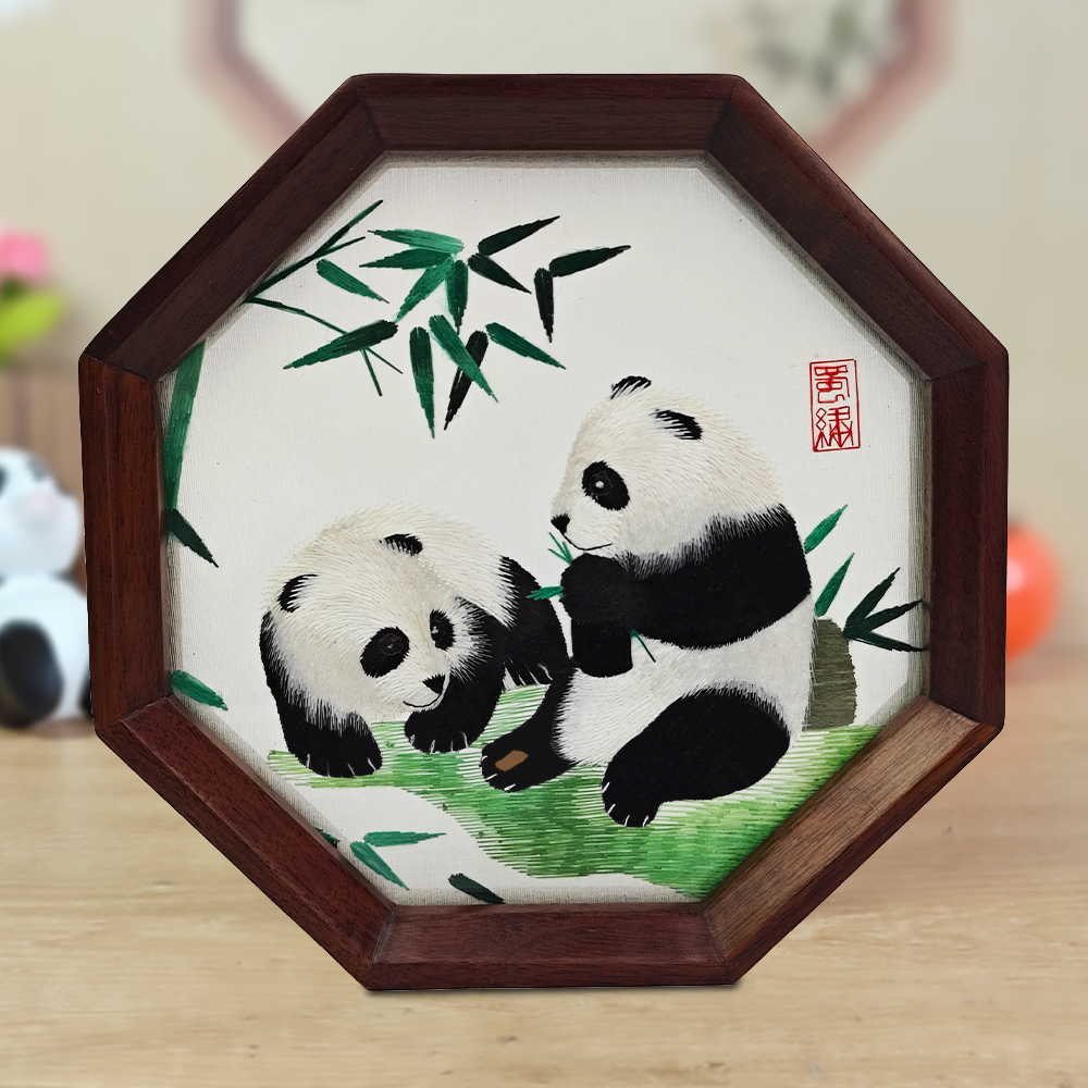 蘇繡熊貓刺繡擺臺擺件手工雙面繡中國風特色禮品送老外伴手禮山水