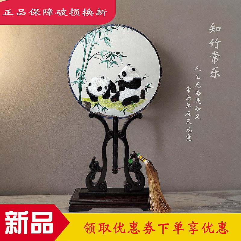蜀繡熊貓雙面刺繡胡桃木擺件中國風特色禮物送老外成都文創紀念品