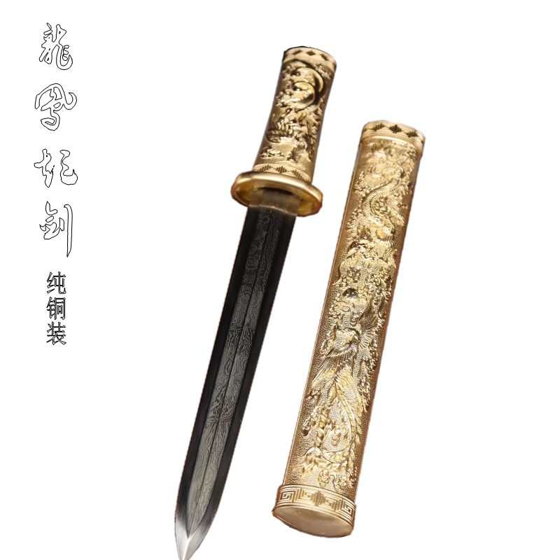 龍泉一體銅鞘手工雕刻花紋鋼覆土燒刃八面短劍車載戶外收藏未開刃