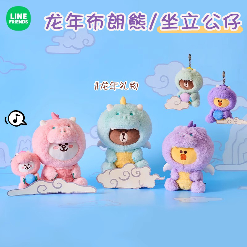 LINE FRIENDS新年布朗熊毛絨公仔玩偶鑰匙扣可愛坐姿娃娃新年禮物
