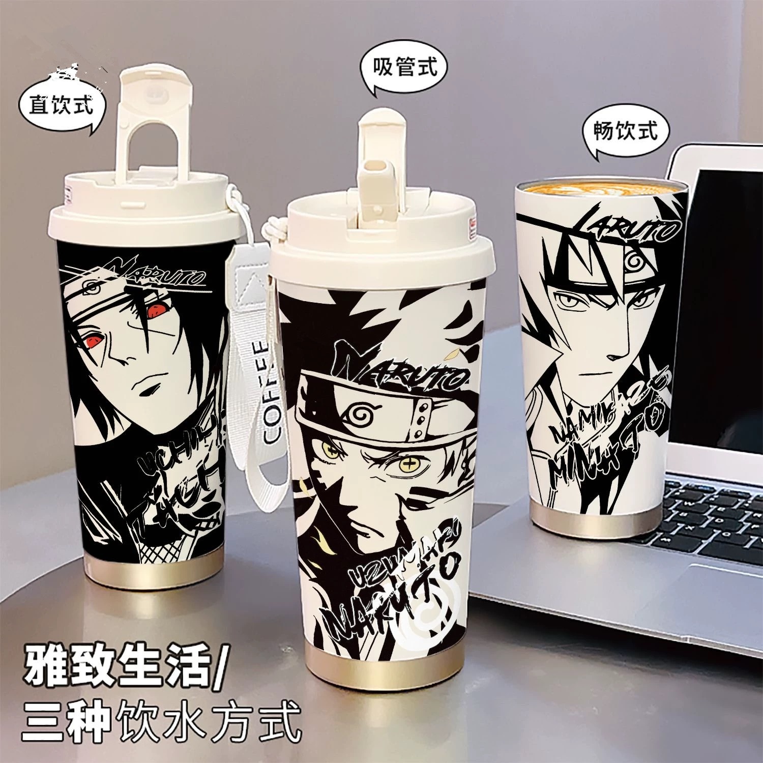 火影忍者316不銹鋼保溫杯冷雙飲口吸管學生便攜大容量二次元水杯