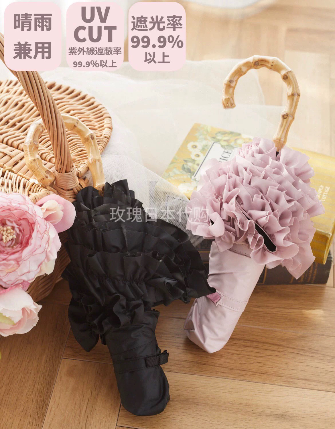 玫瑰日代 包拼郵Maison de fleur褶邊竹柄蝴蝶結荷葉邊遮陽傘雨傘