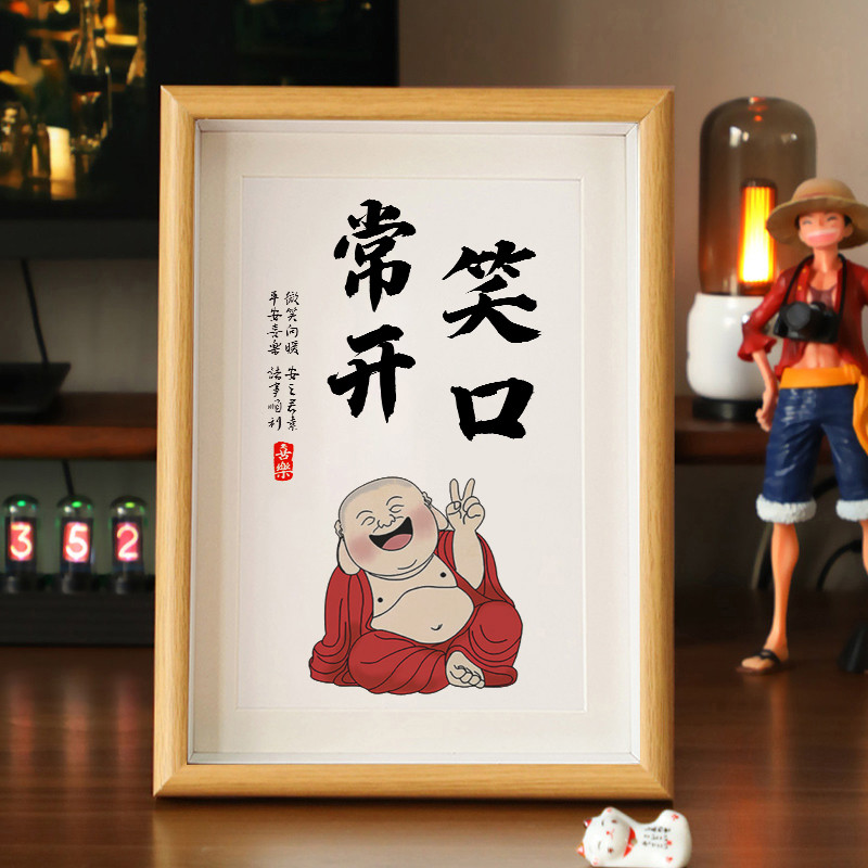 笑口常開字畫擺臺彌勒佛字畫相框畫治愈莫生氣控制情緒書法掛畫