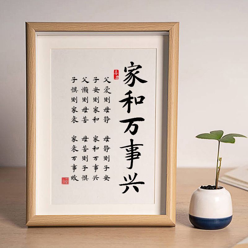 家和萬事興書法擺臺客廳掛畫母靜則子安整版裝飾玄關桌面相框擺件