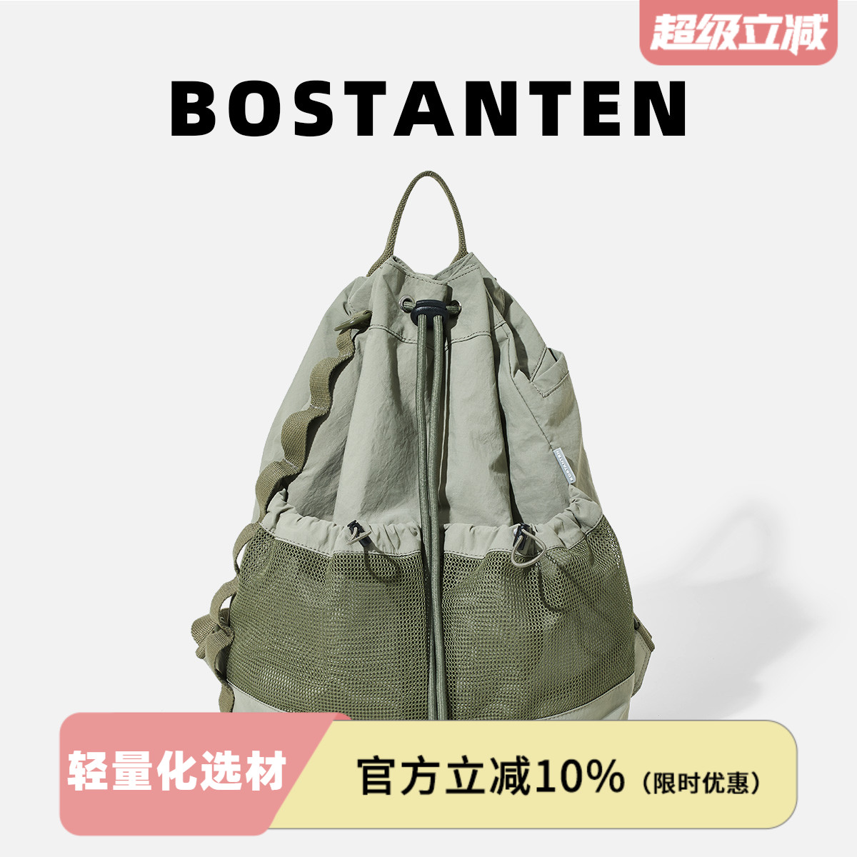 波斯丹頓輕量褶皺旅行登山背包百搭抽繩戶外運動雙肩書包撞色設計