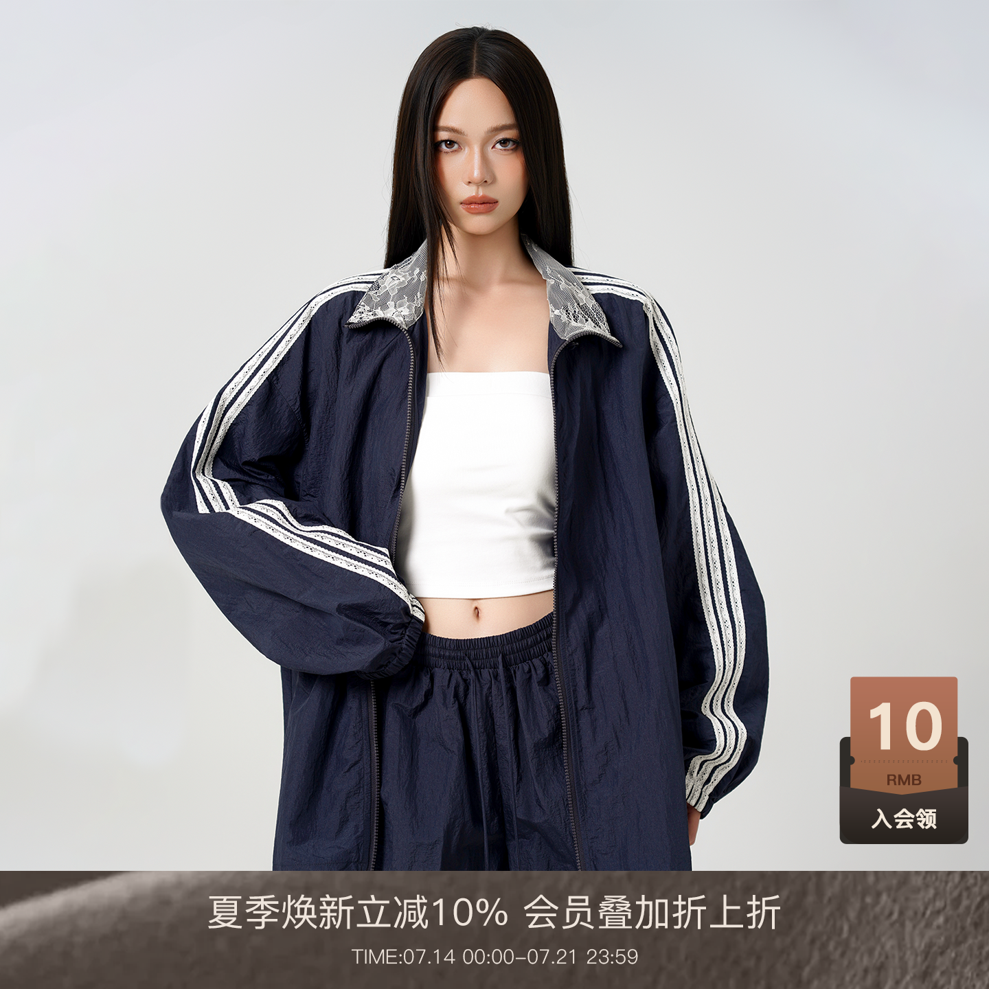 LOUZING蕾絲透氣輕薄套裝女2025新款夏季寬松休閑外套松緊腰短褲