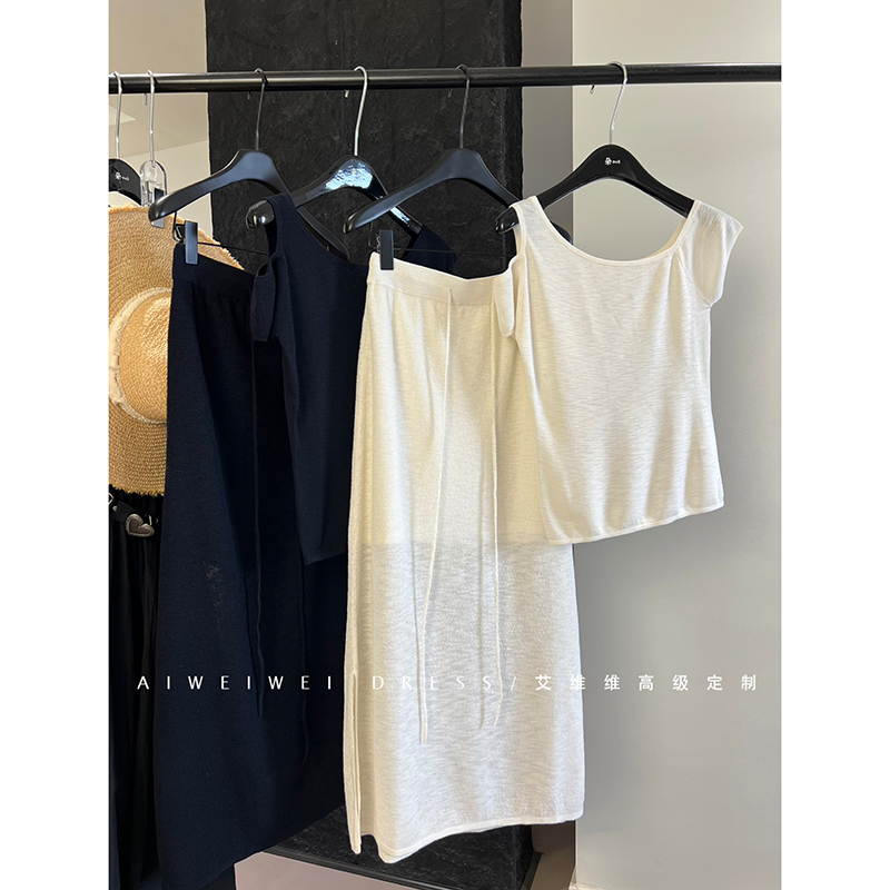 特價!度假BI入套裝 舒適爽滑 松弛斜肩露肩修身上衣+抽繩開叉裙
