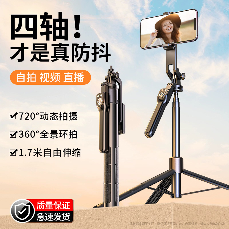 四軸2024新款自拍桿三腳架手機通用拍照神器360度旋轉多功能防抖