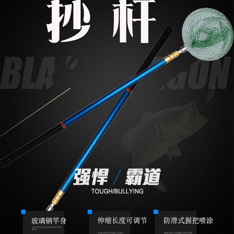 碳素抄網竿套裝大物伸縮魚網抄網桿釣魚網兜網頭全套超輕超硬抄網