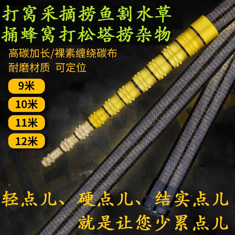 加長伸縮碳素抄網桿超硬9m10/13米割草撈魚吊窩打窩采摘果抄魚竿
