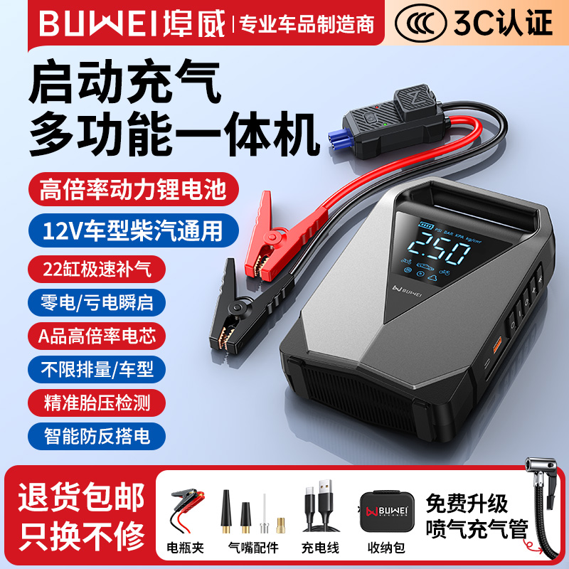 埠威BUWEI汽車輪胎打火充氣啟動電源大容量一體機多功能搭電寶