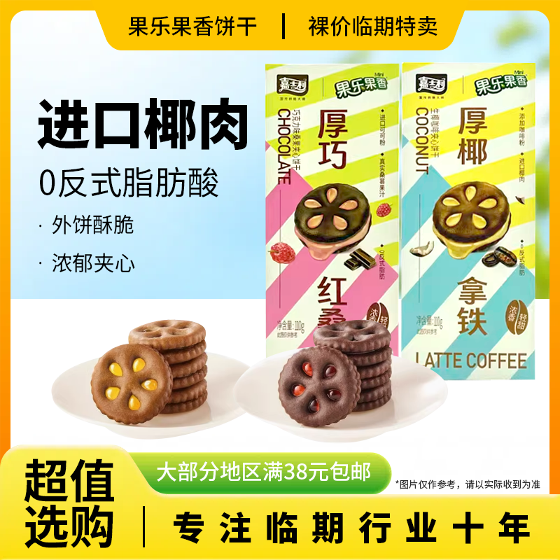 裸價臨期 嘉士利果樂果香夾心餅干110g生椰咖啡巧克力桑果味零食