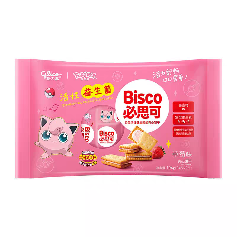 日本進口格力高必思可草莓味活性益生菌兒童夾心餅干194g(24包)