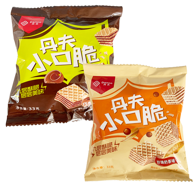 丹夫小口脆33g/包巧克力珍珠奶茶味酸奶味咔咔脆威化餅干零食小吃