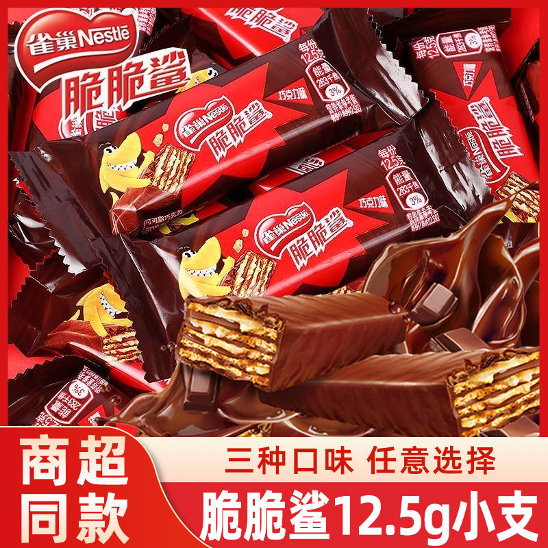 雀巢脆脆鯊巧克力牛奶味威化夾心餅干小包裝散裝零食休閑小吃整箱