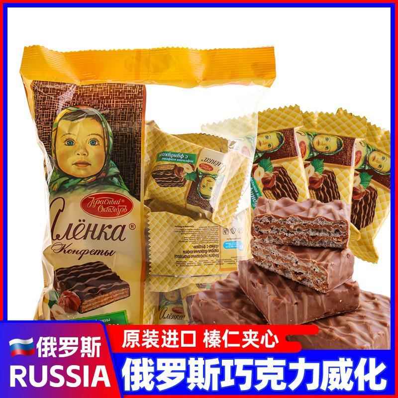 俄羅斯進口巧克力榛仁威化愛蓮巧大頭娃娃餅干休閑零食品
