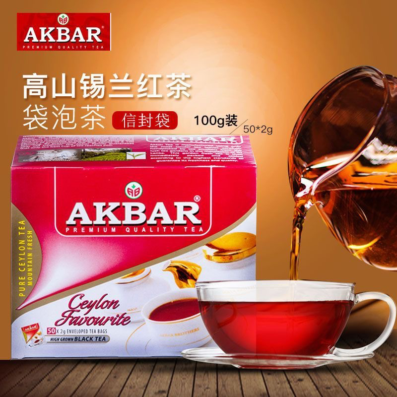 斯里蘭卡AKBAR阿卡巴高山錫蘭紅茶茶包100g(50袋)獨立小袋沖泡
