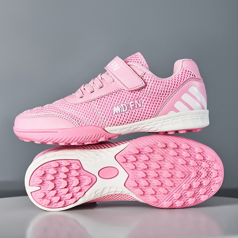 春夏季網面兒童足球鞋碎釘男女魔術貼小學生免系帶透X氣防滑訓練