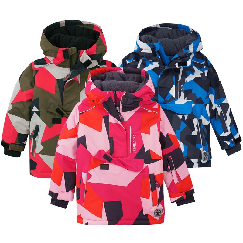 新款兒童男童女童中大童防水棉服沖鋒衣滑雪服寶寶外套連帽抓絨厚