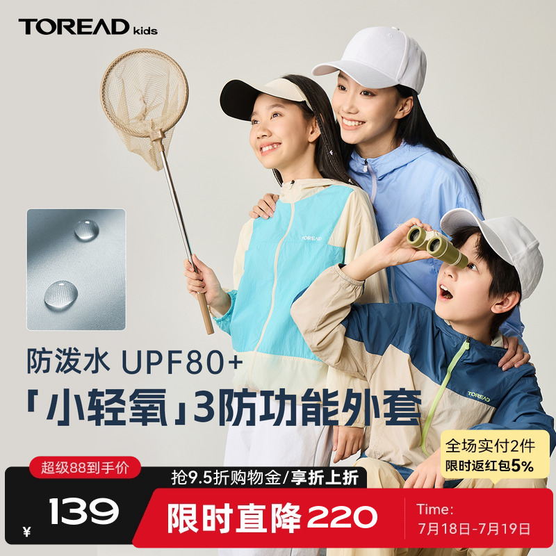 探路者兒童防潑水外套男女童2025年新款夏季輕盈透氣防曬衣童裝
