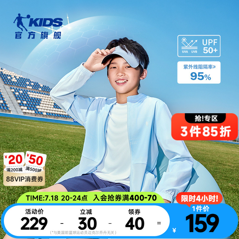 喬丹童裝男童防曬衣兒童薄外套2025夏季新款大童upf50+戶外皮膚衣