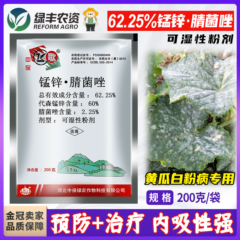 中保飛歌62.25%代森錳鋅腈菌唑可濕性粉劑 黃瓜白粉病農藥殺菌劑