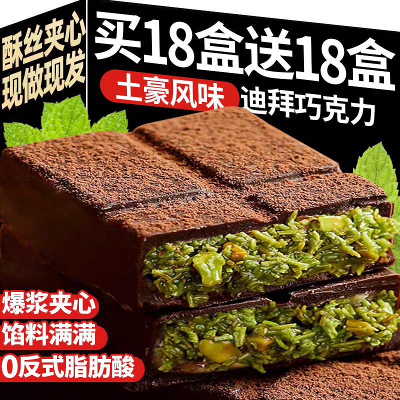 迪拜風味巧克力夾心開心果醬面包絲零食千絲酥整箱(代可可脂)