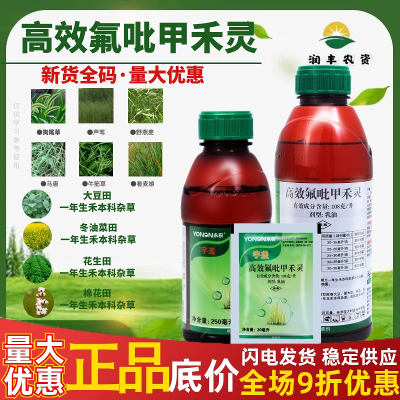 永農宇蓋高效氟吡甲禾靈專殺蘆葦花生大豆棉花牛筋草除草劑農藥