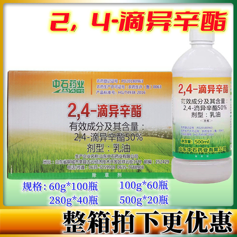 山東中石50%2,4-滴異辛酯小麥玉米大豆闊葉除草劑2.4D農藥包郵