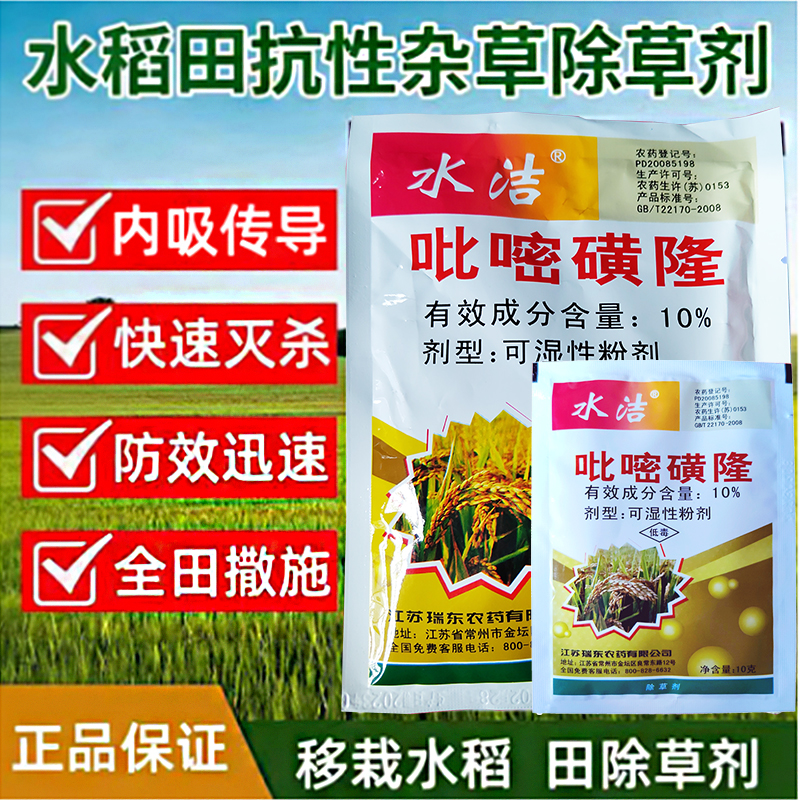 水潔10%吡嘧磺隆比密磺隆水稻田專用除草劑一年生多年生闊葉除草