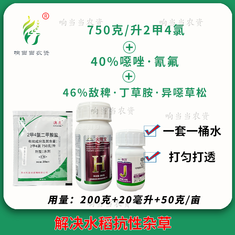 火隆寶敵稗丁草胺異噁草松噁唑氰氟2甲4氯水稻禾闊雙除除草劑組合