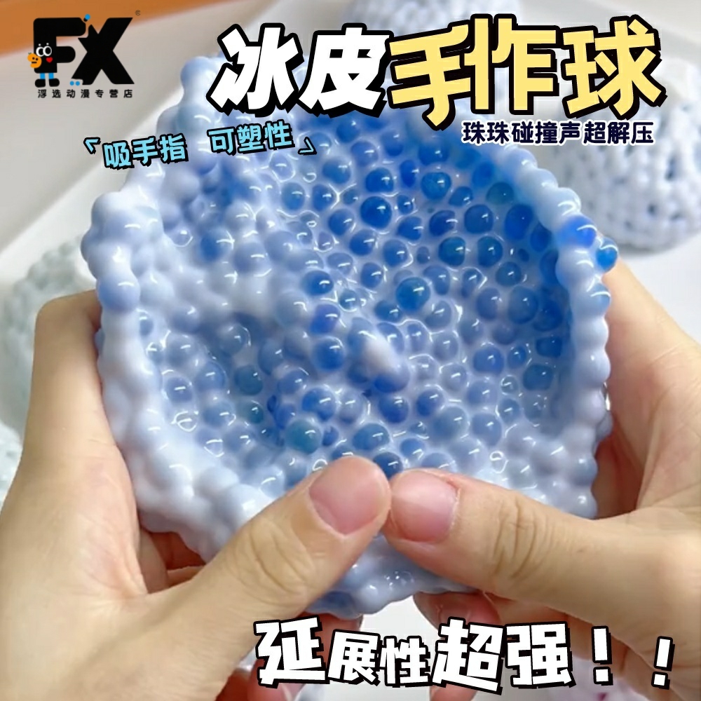 新扎帶款夜光冰皮手作球爆爆珠解壓捏捏發泄水晶吵吵球玩具送氣筒
