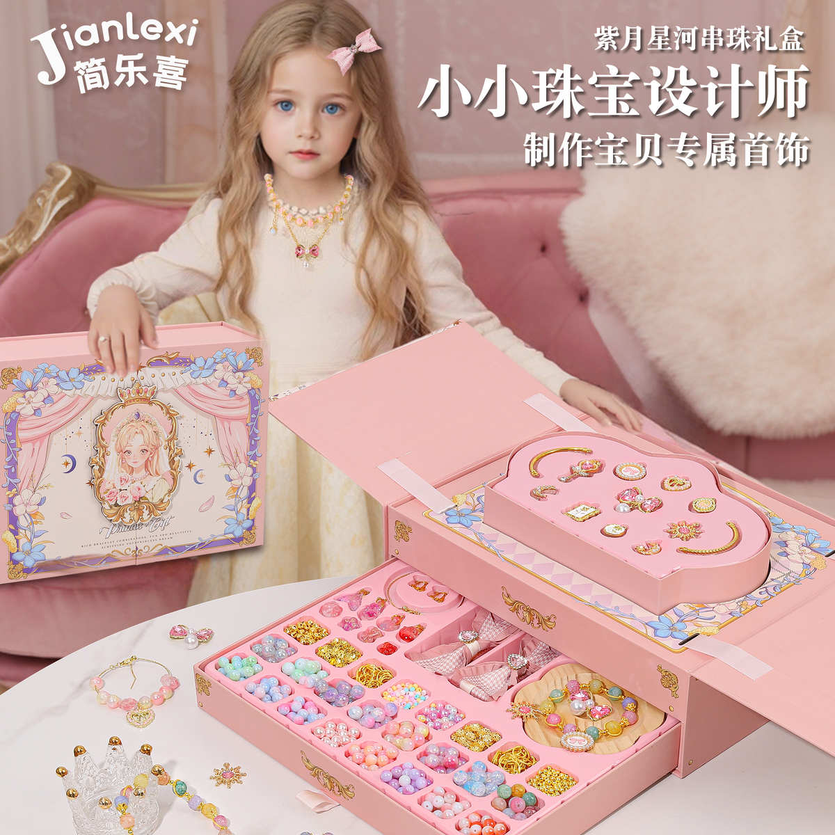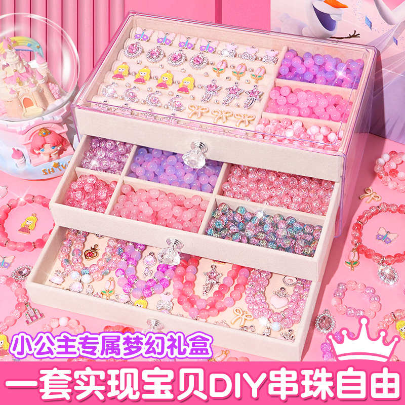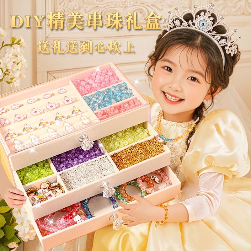 兒童串珠禮盒玩具女孩子手工diy材料2025年爆穿珠子首飾盒卡通件