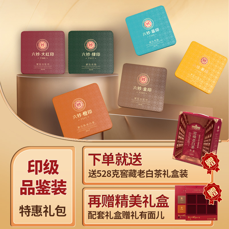 六妙白茶印級品鑒茶葉福鼎老白茶白牡丹壽眉餅干茶小方片送人禮盒