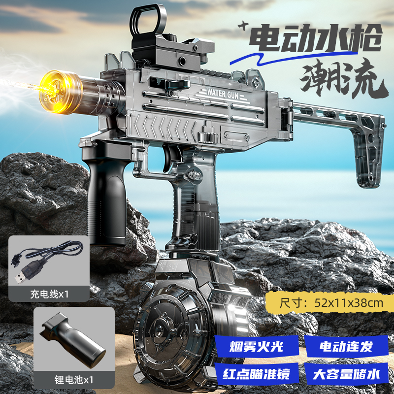 煙霧爆閃火光水槍電動連發高速回膛大容量打水仗戶外男玩具