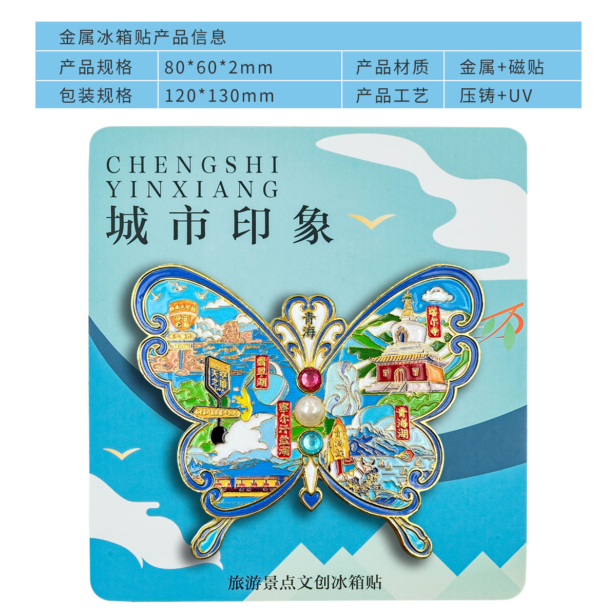 青海蝴蝶掛墜金屬冰箱貼虎丘拙政園金雞湖景區國潮文創旅游紀念品