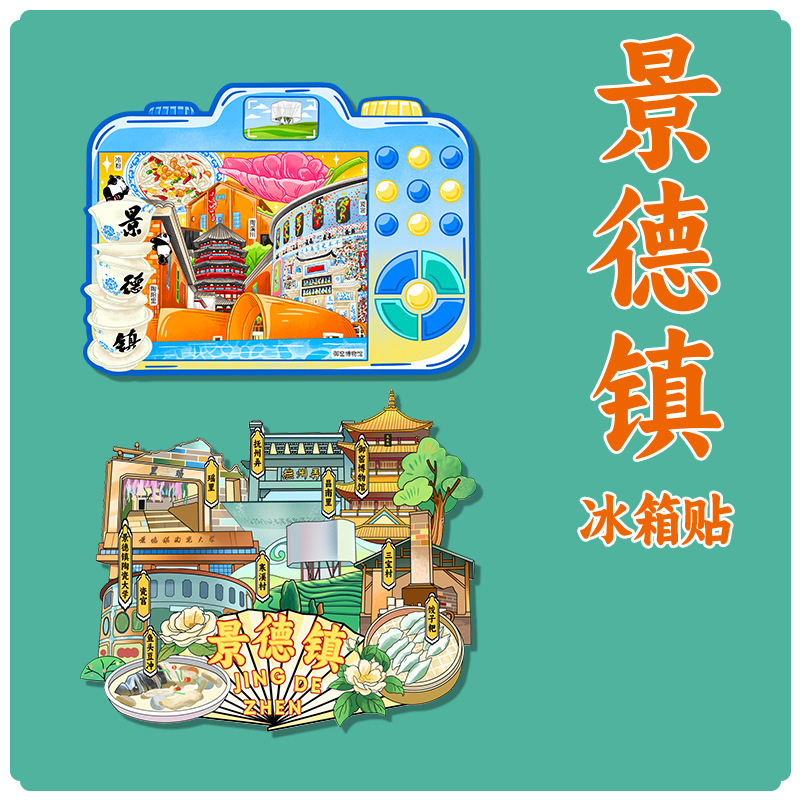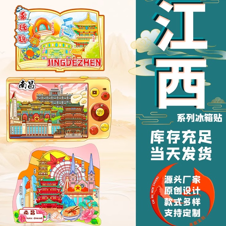 2025新款景德鎮冰箱貼木質裝飾江西省旅游紀念品文創城市磁性吸貼