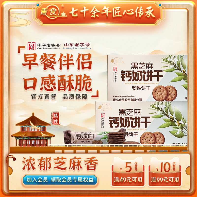 青食黑芝麻鈣奶餅干100克新品無色素無香精中華老字號青食旗艦店
