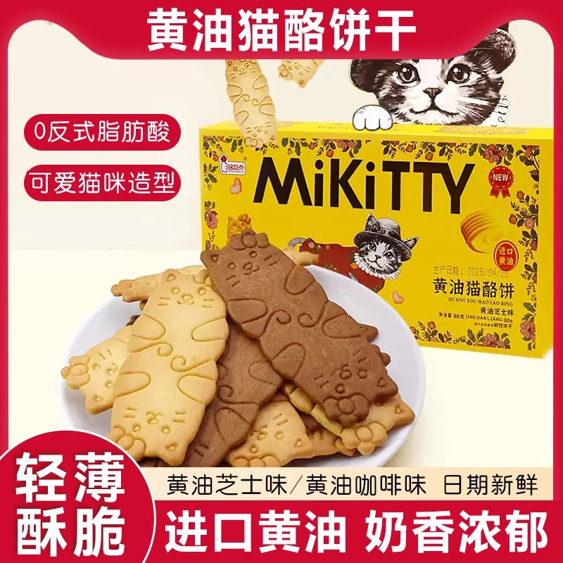 黃油貓酪餅干曲奇薄脆芝士巖燒咖啡牛奶網紅解饞休閑小吃零食品