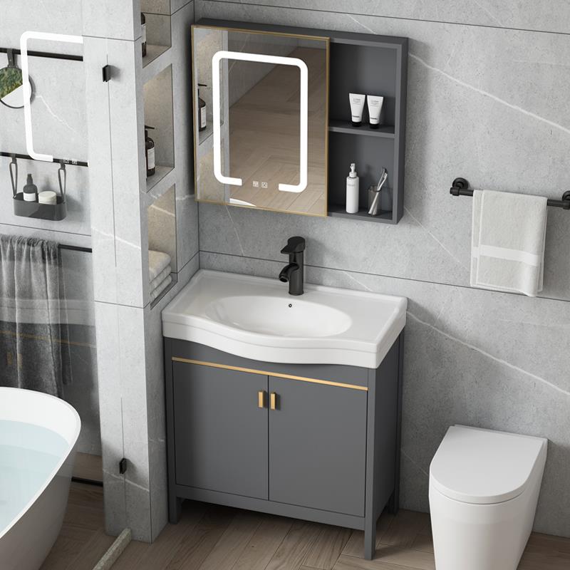 愛萊德落地式浴室柜太空鋁圓角弧衛生間洗漱臺陶瓷一體洗手洗臉盆柜組合