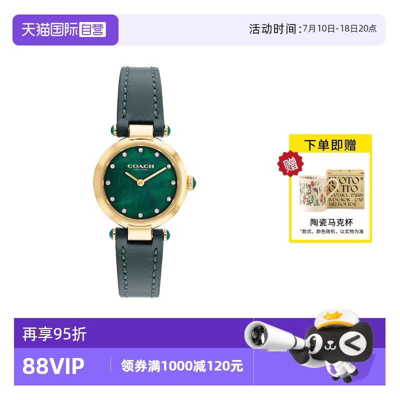【自營】COACH/蔻馳手表女CARY小綠表貝母盤鑲鉆石英女表14503951