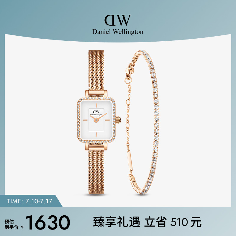 【新品】DW手表套裝女士 QUADRO星環石英腕表小方表手鏈疊戴送禮